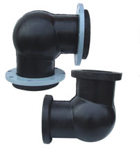 可曲撓橡膠彎頭,簡稱橡膠彎頭,是由織物增強(qiáng)的橡膠件與平形活接頭、松套金屬法蘭或螺紋管法蘭組成,用于管道隔振降噪、補(bǔ)償位移的彎頭。