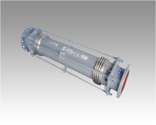 該類膨脹節是由兩個波紋管、長中間接管以及大拉桿等零件構成,它能吸收管系任意平面內的橫向位移。位移時大拉桿上的球面螺母繞球面墊圈移動,同時大拉桿還具有承受你內壓推力的能力。